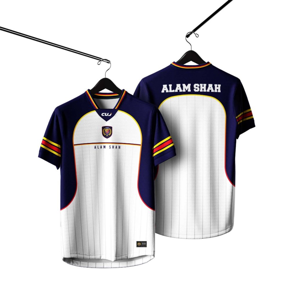 KONSEP REKABENTUK : Di bahagian hadapan di cetak text ALAM SHAH, logo ASAS & logo CUJ (CHITA USAHA JAYA) merujuk kepada moto sekolah. Di kiri & kanan lengan dicetak dengan jalur warna ASAS tricolour merah, biru & kuning & di bahagian belakang text ALAM SHAH berfont besar melengkapkan branding ASAS.